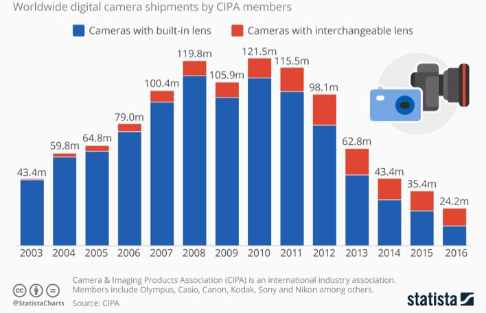 据CIPA(日本国际相机影像器材工业协会)的数据显示自2010年全球数码相机出货量达到顶峰后,由于智能手机崛起,消费者分享照片的方式发生改变,数码相机的出货量陡然走低。然而值得注意的是:从细分品类来看,下跌主要集中于固定镜头相机(多为卡片机产品),而可换镜头相机(DSLR+无反相机)得益于成像效果和专业性壁垒,在整体市场低迷的情况下依然保持了相对稳定的表现,专业舆论认为由于受镜头和机身物理尺寸的局限,智能手机在目前还无法真正取代高阶数码相机。考虑到可换镜头相机在全球专业消费者中的巨大保有量及其平均10万次的快门寿命。近年以来镜头等相机配件需求将依然旺盛,尤其是在德国以及日本等热爱摄影、记录的国家。镜头销量长盛不衰。我国早年的镜头厂商多为日本代工,而近年来也逐渐拥有独立品牌,并且在工艺和质量上也达到了国际品质,以满足了德国消费者的需求。