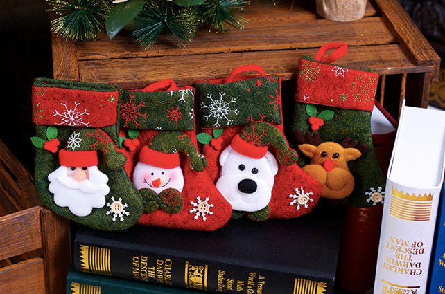 一般来说,圣诞袜都是以红、绿、白三色为主,款式一般为老人、雪人、小熊、麋鹿,同时相对比较注重工艺,产品在细节上追求精细,每个形象相对比较逼真、生动,甚至可以作为装饰挂件。
