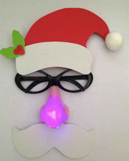 这款圣诞面具是厂家最新设计推出的舞台道具,拔下大鼻子后面白色的隔电片,打开鼻子下的开关按钮,就可以实现闪光功能,能在圣诞晚会上营造开心的氛围,特别受小孩大人的喜爱。