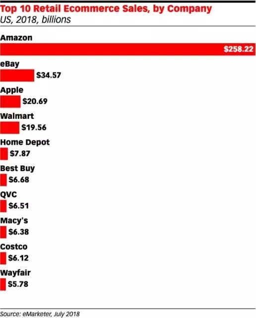 亚马逊的电商销售额比eBay高出7.5倍左右,但它们都依赖于平台上的中小卖家。虽然eBay更依赖这种平台模式,但亚马逊的平台销售额也占其总销售额的68%,而且还在快速增长。