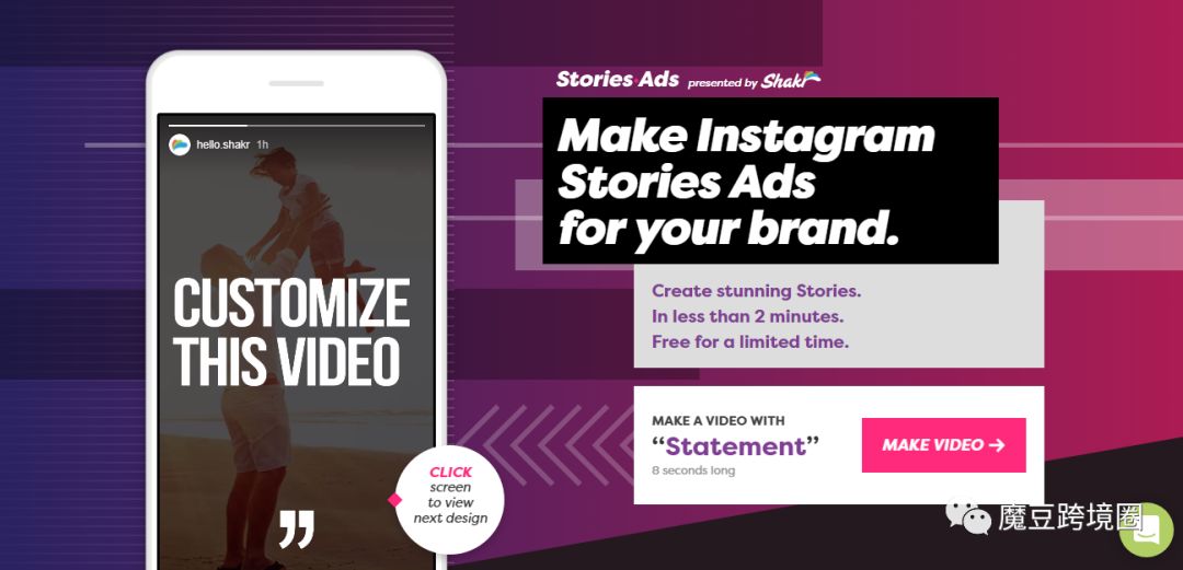 StoriesAds.com是一个为Instagram的垂直格式创建引人注目的视频内容的工具。StoriesAds.com为广告商和销售商提供的工具,帮他们的Instagram构建垂直视频资产,是一个从web浏览器端构建的快速和有效的方式。