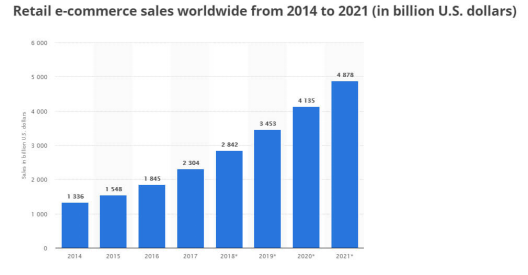 大多数跨境电商卖家都熟悉eBay和亚马逊,但有没有其他平台可以开拓?2017年,全球电商零售额达2.3万亿美元,预计到2021年将达到4.88万亿美元。网购是全球最受欢迎的活动之一,2016年仅在中国,约有19%的零售是通过互联网进行销售的。