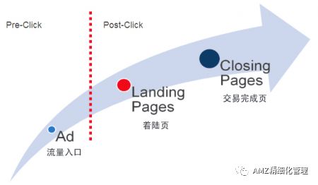我们按照流量流动的逻辑,以点击(Click)这个行为为标志性事件,把流量区分为Pre-Click和Post-Click两个阶段的流量。为了分析的方便,把click本身也归于Pre-Click。把流量按照阶段区分开,其实就是一种细分的方法。由于流量在流动,如果流量整体的绩效不佳,未必是每个阶段都存在问题,因此我们需要更细节的区分。