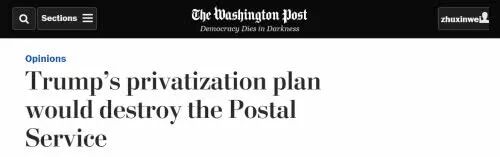 亚马逊的老板是贝佐斯,而贝佐斯旗下还有另外一家公司,名叫《华盛顿邮报》……既然你打算私有化,那《华盛顿邮报》就为老板发声,为总统添乱了。宣称如果特朗普敢私有化USPS,那么就会摧毁美国的邮政系统……