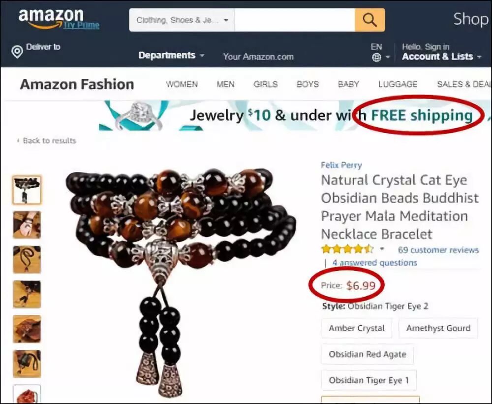 ▲中国手串在美国亚马逊销售,免邮费