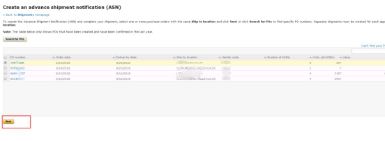 2.在这里我们可以看到4 个确认的采购订单,在旁边点击Submit ASN,就是提交发货通知;