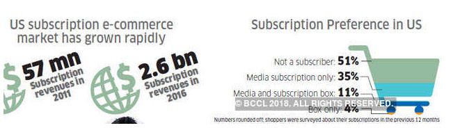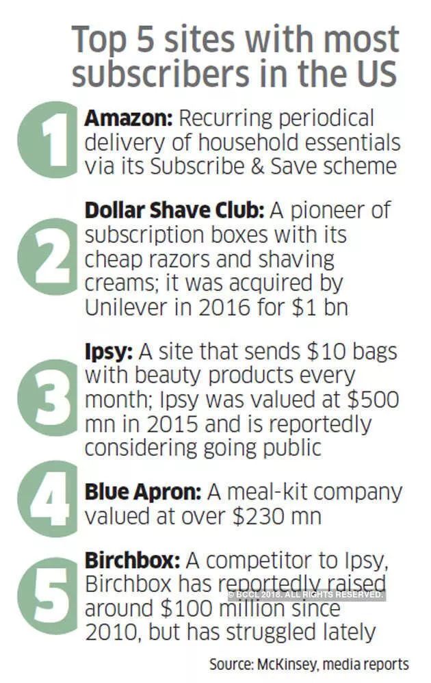 虽然许多印度人尤其是印度市民,都对订阅服务非常熟悉,但产品订购在印度仍然是一个相对较新的现象。“1 美元剃须俱乐部”(Dollar Shave Club)从小生意做到大买卖,在美国风靡一时。该公司最初将低价格的剃须刀按月准时邮寄到客户家中,后来,逐渐衍生为邮寄其他剃须产品。如今,订购套盒已成为美国的一大消费市场。