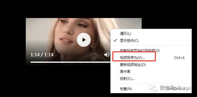 点击播放视频,跳转到播放页面,右键就可以看到视频另存为
