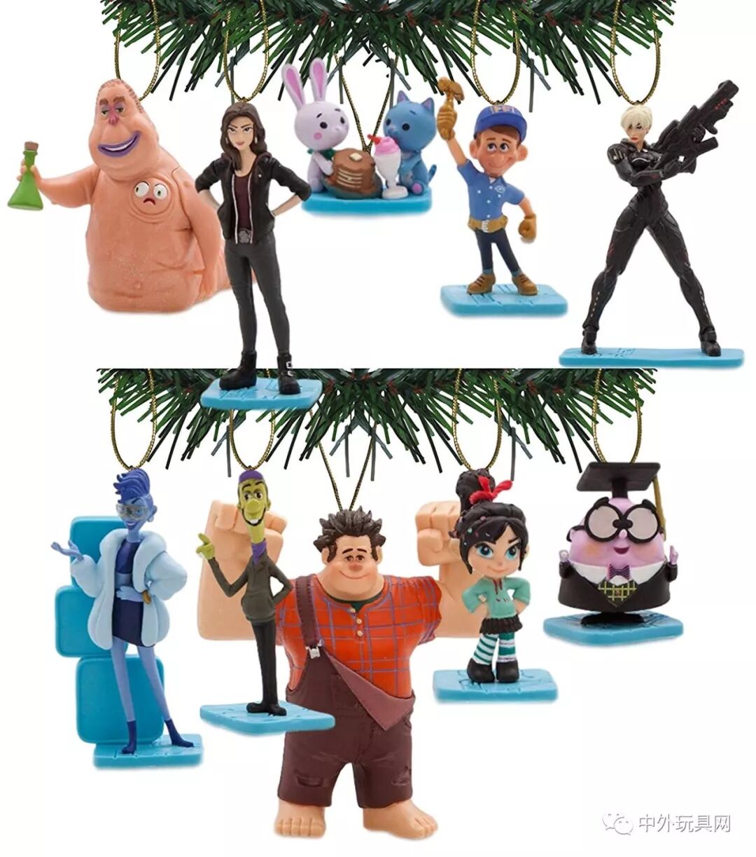 这套袖珍角色套装包括六个角色:闪姐、拉尔夫、云妮洛普、赞姐、阿修和卡尔霍恩,产品介绍里说这个系列可以做为蛋糕装饰,而有心的商家还将其作为圣诞树装饰出售。