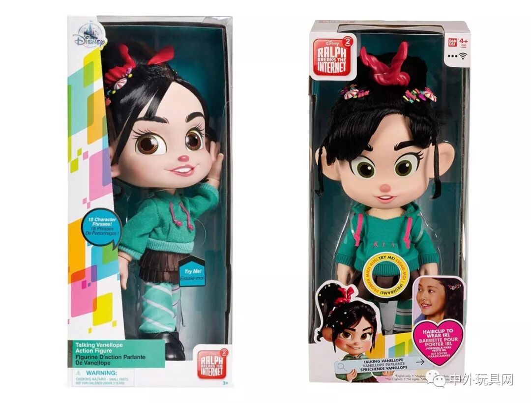 迪士尼和万代分别出品了一款云妮洛普的语音娃娃,按住娃娃的腹部她们将会"说话"。就外形来看,迪士尼的云妮洛普娃娃明显更有电影里云妮洛普的机灵劲儿,而万代的娃娃则更萌一些。