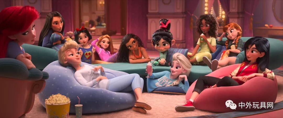 看过《无敌破坏王2:大闹互联网》的小伙伴们一定不会对图上的场景感到陌生,这是云妮洛普来到公主化妆间之后给各位公主"种草"了非常舒适的休闲服,使得公主们脱下了身上繁重的礼服,穿上了T恤、睡裤。