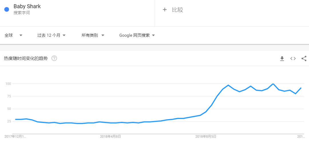 小编发现谷歌趋势Baby Shark的搜索量也处于上升的状态。