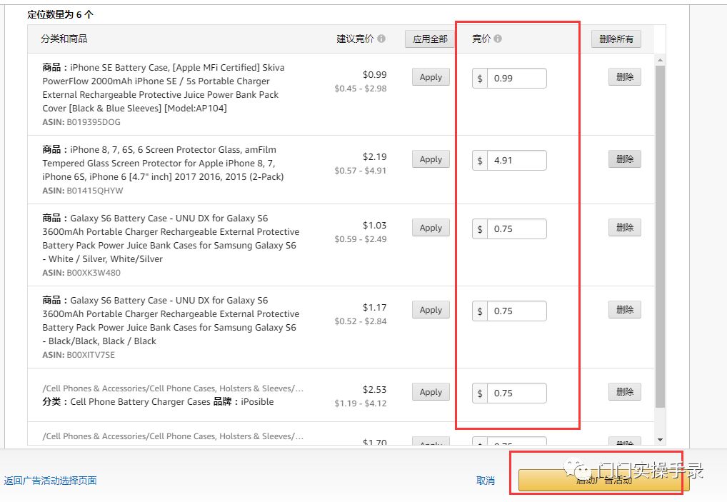 这里的广告活动名称你可以自己拟定,可以用产品名或者sku来命名,方便自己区分就成!