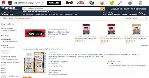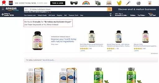 下图是以客户视角搜索“Dr tobias multivitamin”(一种维他命剂)得到的3个结果。