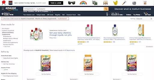 再来看一个更相关的案例,下图是“multivitamin”的搜索结果页面。