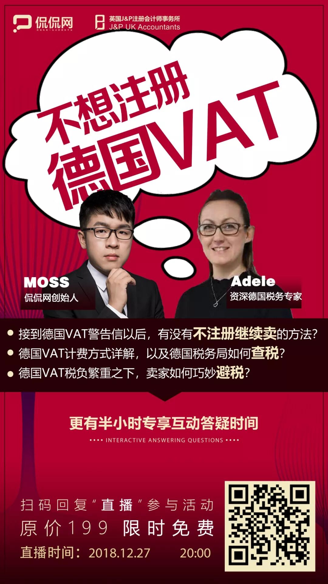 这篇文章可能还是不太够,讲解得不太彻底。所以,为了尽可能帮助到各位老铁,满足不同层次卖家的不同需求。这里我专门邀请到J&P VAT的欧洲税务专家 Adele,来和我一道给各位老铁做一个关于德国VAT的线上直播,特别是针对不想注册德国VAT的老铁,看看能不能给大家一个更好的解决方案? 希望通过我们的经验,能够尽可能的帮助到大家。