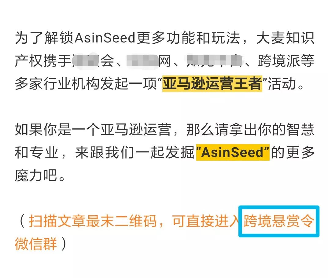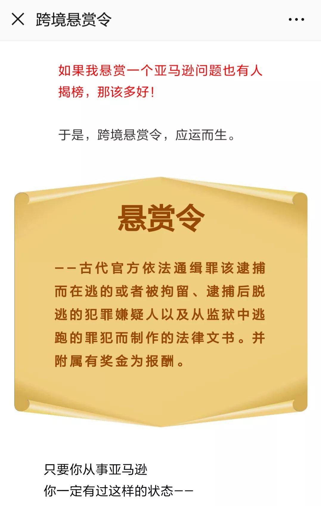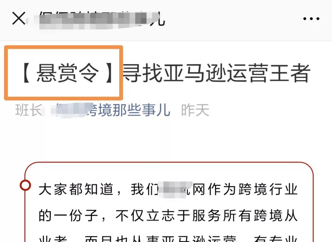 从昨天开始,陆续有好多粉丝跑来问我们,是不是和XX网,XX会,联手搞了个“亚马逊运营王者”的活动……等等?我们并不知道自己有搞这样的活动啊!小编丈二和尚摸不着头脑,点进那篇文章仔细一看才恍然大悟:原来这个活动里,完全模仿了我们文章一贯采用的的格式,连群名也搞得和我们一模一样,使用了跨境悬赏令和悬赏群这样的名字。