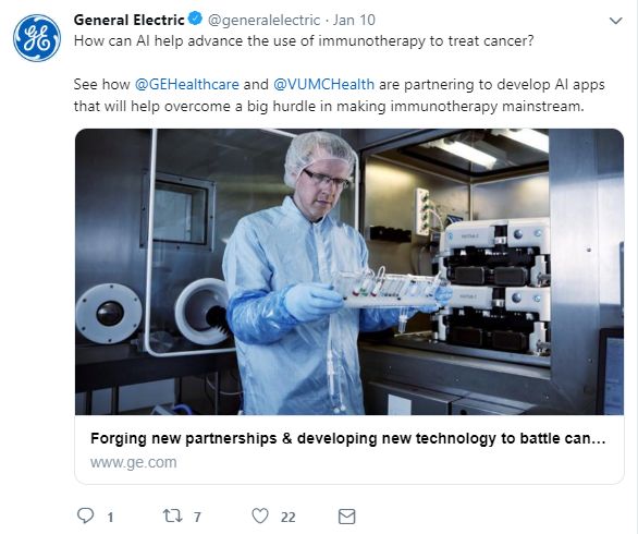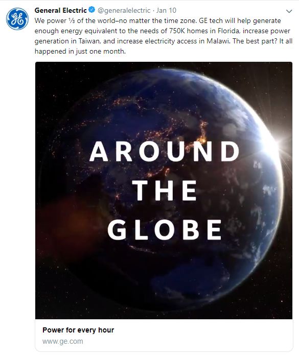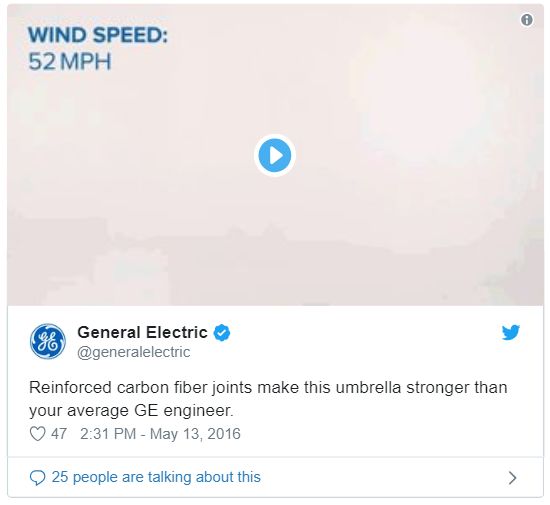 尽管通用电气(GE)的业务主要集中在不怎么有趣的领域——电器、电力、电子……但这不代表它的Twitter内容就一定不吸引人。GE所在的科技创新领域里,大多数企业都只会用Twitter宣传自己的产品或内容。而通用电气并不仅限于此,而是找到了高大上和接地气的完美平衡。