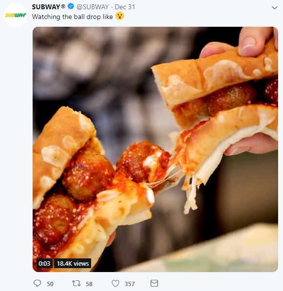 令人影响深刻就是大量的短视频或动图,他们很好地展示了Subway食物的诱人之处,语言幽默,让受众有兴趣咽咽口水看下去。比如下图,就连一个简单的动图都要“皮一下”。