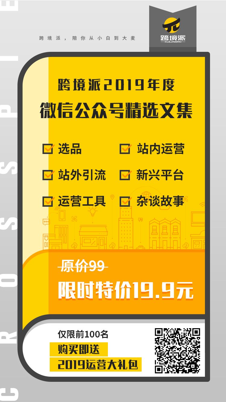 我知道大家可能没有时间逐一看完公众号每一篇推送,所以在这里我把过去一年的文章梳理分类,熬夜加班几个通宵将这些过去一年来对大家最最有用的干货文章编辑排版了一本电子书《2019年跨境派文章精选》。