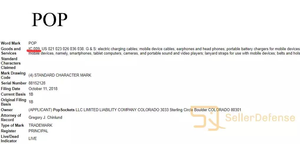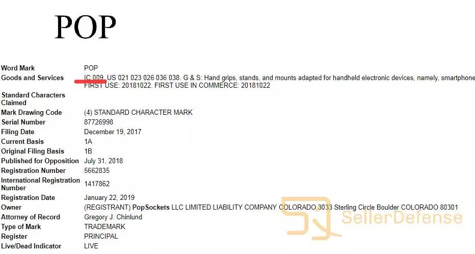 上个帖子有一个很重要的细节没有披露,那就是 POP 这个商标是2019/1/22注册成功的(下图中的 Registration Date 为商标注册成功时间),而GBC开始钓鱼是从 2019/1/23 号开始的,可见GBC计划之周密,安排之紧凑。另外 POP 这个商标是注册在 009 大类的,产品为手机支架类产品,所以如果你卖的是手机支架类的产品,而且标题、描述、属性任一地方含 POP 这个词,就是侵权,就有可能被GBC抓到!
