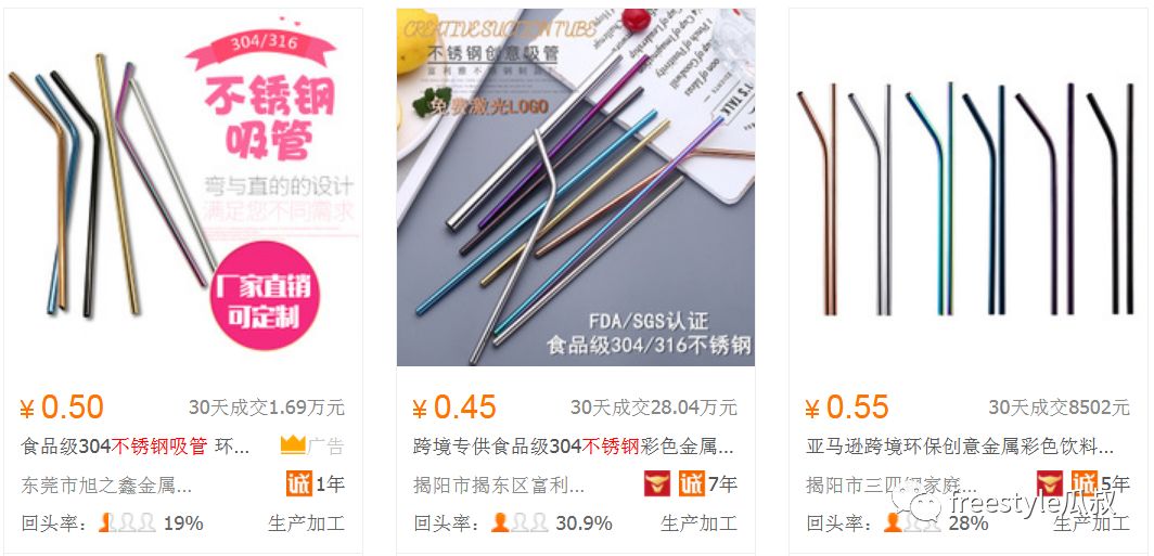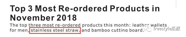 不锈钢吸管同样不是什么新品,但据调研公司报告显示,不锈钢吸管在2018年12月份仍然是复购很高的产品 。