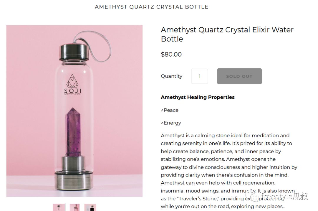 其实就是普通水瓶里面放块石英石,说是对身体健康有各种功效(此处请参见第三条认知价值)。