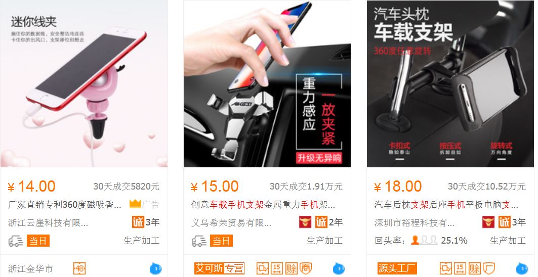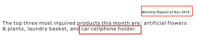 车载手机支架其实不算什么新品了,但据某Sourcing公司最新报告显示,一直到去年12月,仍然是商家咨询量最多的产品之一。