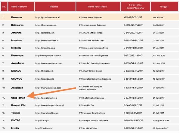 UangTeman也是印尼第一批拿到OJK注册的平台之一。