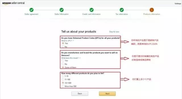 亚马逊会列举一些问题请您回答,借此了解您的产品性质和开始销售时计划的数量。基于这些信息,亚马逊会推荐适合您账户的相关工具和信息。