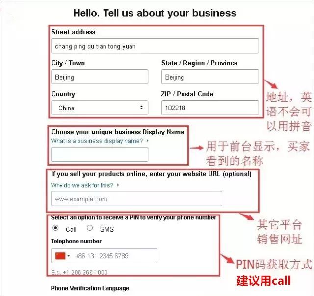 联系电话: 格式为:+8675588888888建议使用座机方便接下来的信息认证,如果不行就用手机号,格式+8613888888888