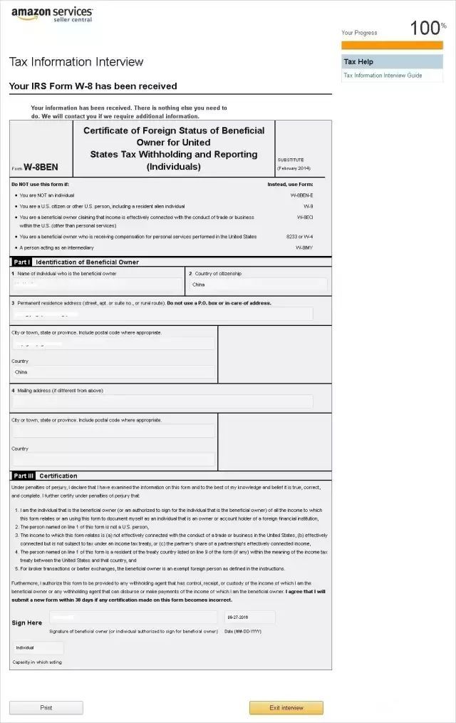 第六步:预览W-8BEN内容
