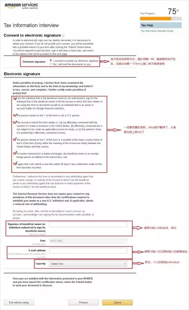 选择同意提供电子签名,勾选所有弹的出多选项和输入框。然后写下公司名或者您的名称,邮箱地址以及国家,点击确定即可。