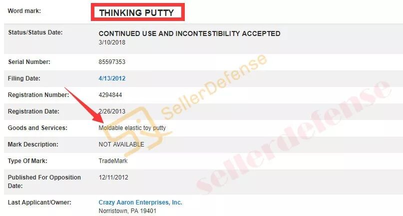 智能黏土案件起诉时间为2019年1月2日,案件号:19-cv-25,原告 Crazy Aaron 公司,原告品牌有CRAZY AARON’S 、 THINKING PUTTY、 LIQUID GLASS、 STRANGE ATTRACTOR等。