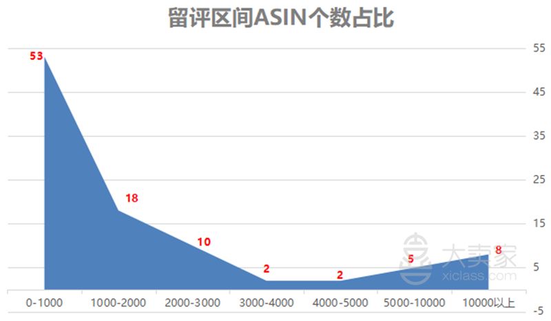Laptop Accessories品类Top100中产品留评总数为214595条,平均留评量为2189.7条。Listing最低评论0,最高评论12910条。这个类目的评论数集中在0-2000条。其中,0-1000该留评区间共有53个ASIN,平均评论数量为332条;1000-2000该留评区间共有18个ASIN,平均评论数量有1391条。