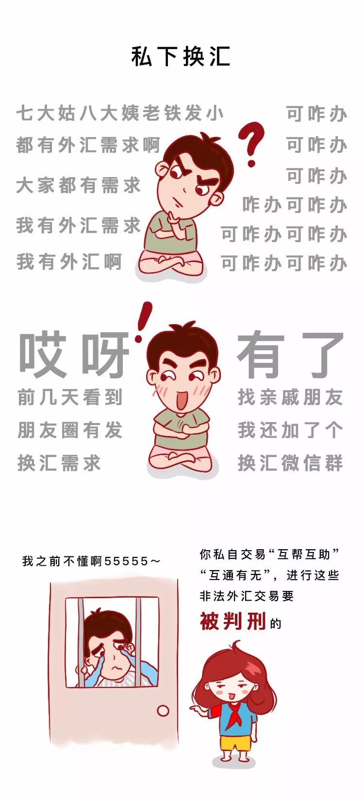 然而,跨境宝宝们要注意,以后像朋友圈私下换汇、个人非法买卖外汇、通过跨国(境)兑付型地下钱庄买卖外汇等这些结汇方式,你就都不能再碰了,因为私下换汇已确定要判判判判判判刑了!从2月1日起,非法进行外汇交易并获利超过10万人民币,将按照非法经营罪追究刑事责任。