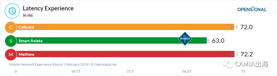 在移动网络延迟方面,Smart Axiata的延迟指数最低,是三大运营商中表现最佳的玩家。