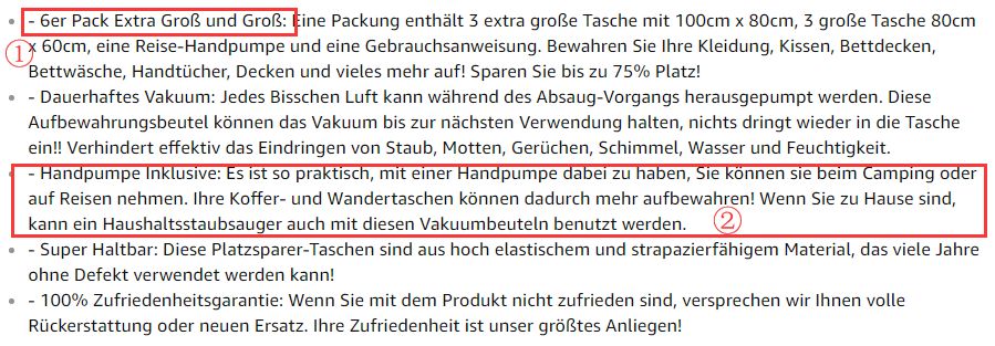 1. 套装所包含产品不应成为最重要卖点,如常规产品一样写在长描述中即可。该产品最重要的用途为收纳物品节省空间,所以放在第一位;