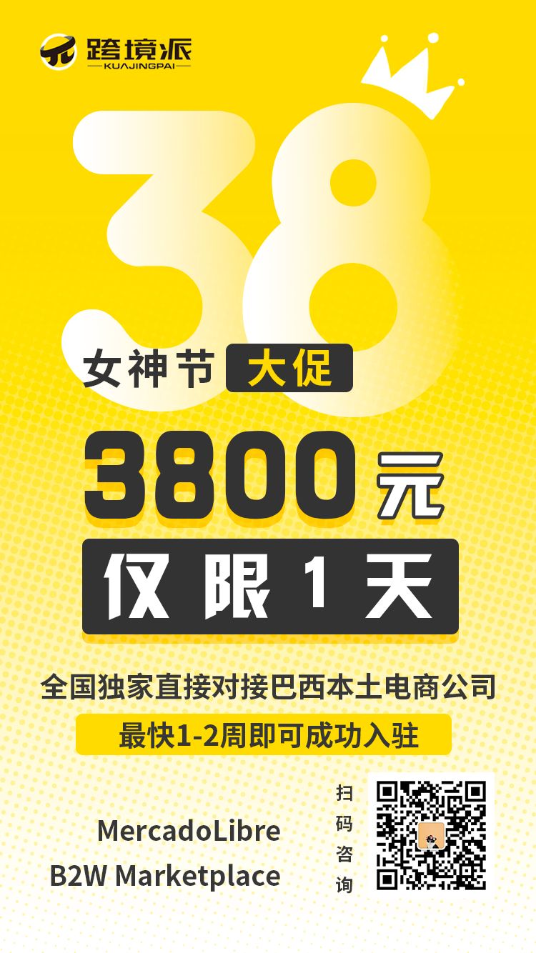 注意:目前国内仅跨境派一家可协助卖家入驻巴西市场,妥妥的粉丝福利,看到这篇文章的你还在等什么,赶紧扫描下方二维码,回复:巴西。即可进入巴西电商市场交流群,抢先入驻平台!限时7天,先到先得哦~