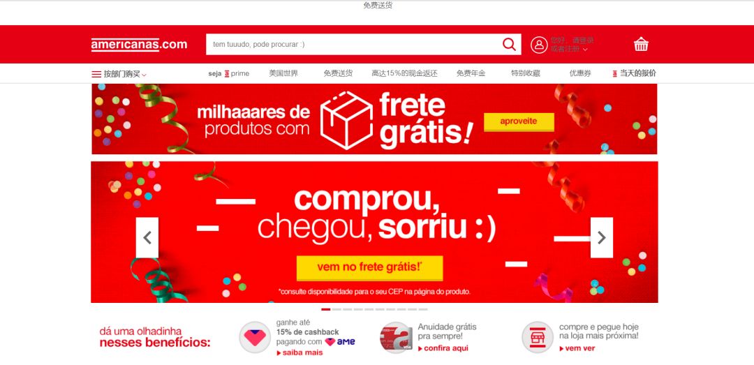 Americanas是巴西最大的在线商店,品类齐全,一共提供40多个类别超过250万件商品;并且平台提供的产品几乎是全网最低价,所以也是最受巴西人欢迎的网站。