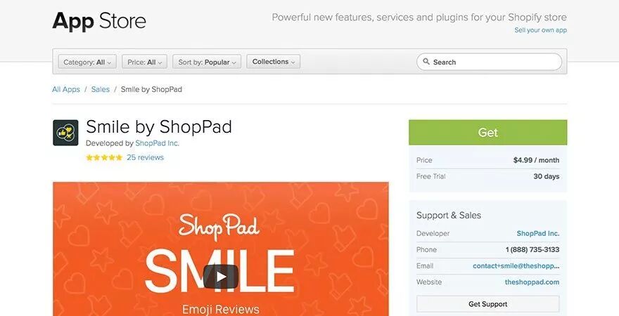 Smile by ShopPad,这个APP让客户可以用表情符号来评论产品,这对于那些想要与众不同的品牌来说很好用。如果你卖给Gen Z一代(80后)或千禧一代,这款应用可能是一种让他们参与进来并留下产品评论的好方法。