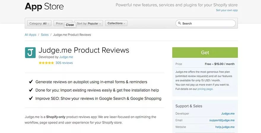 通过向客户发送邮件来增加评论。客户可以在电子邮件中直接写评论。你可以随意定制想要的评论邮件,你甚至可以把已经写过评论的客户列入黑名单。这款应用程序运行速度很快,因此客户可以更快地查看评论,顾客还可以留下评论图片。店主可以回复顾客的评论,感谢顾客或提供解决方案。