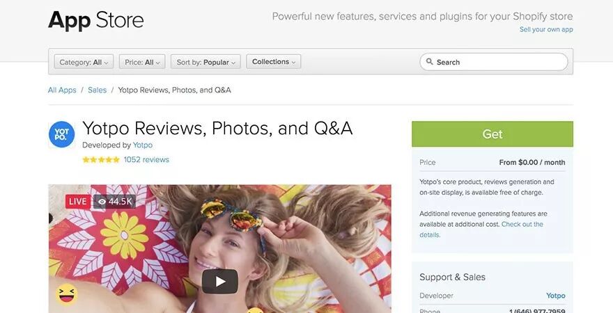 Yotpo Social Review声称他们能够帮助店主获得比任何其他应用程序多3倍的评论。Yotpo已经与谷歌、Facebook和其他社交网络合作,帮助店主们留住更多的客户。该应用程序可以优化搜索,并有助于提高转化率。客户也可以用自己的照片评论。当你在运行谷歌广告时,你的产品会显示它的星级和评论数量。你的客户甚至可以在Pinterest上推送他们的评论和照片,你也可以在这个应用上回复评论。