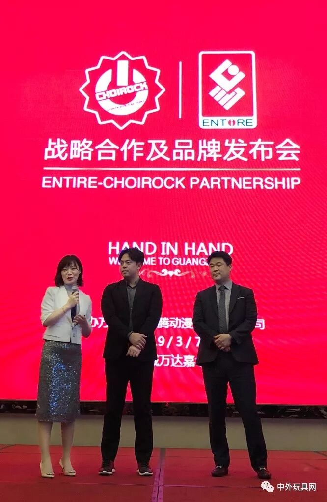3月7日,广州易腾动漫文化有限公司(Entire Entertainment Ltd)在广州增城召开 “Entire-Choirock 战略合作及品牌发布会”,来自全国各地的玩具经销商、游戏、出版、食品、服装等行业的授权客户,媒体界、文娱创投机构的200余位嘉宾齐聚一堂,见证了“新易腾”全新面貌和《咖宝》系列动漫作品、玩具衍生品的首度亮相(文末有彩蛋视频)。
