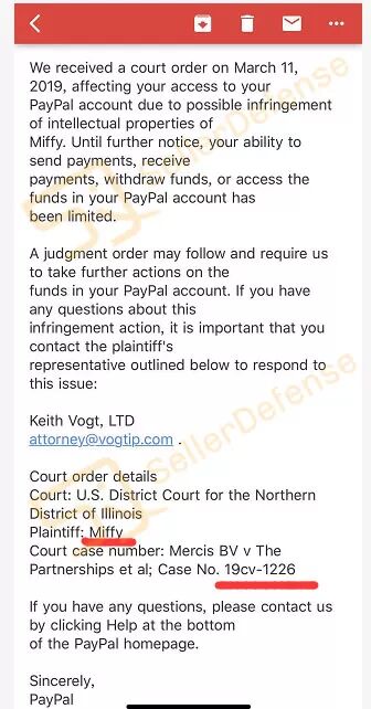 今天一大早,SellerDefense星球群里有卖家上报,说自己收到了Keith律所的邮件,被 Miffy 米菲兔品牌告了,PayPal账号被冻结!!!