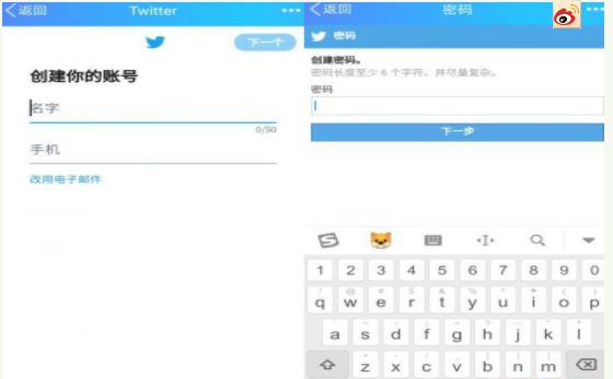填写Twitter用户名,邮箱账号,格式***@126.com,登录密码,然后点击“下一步”,