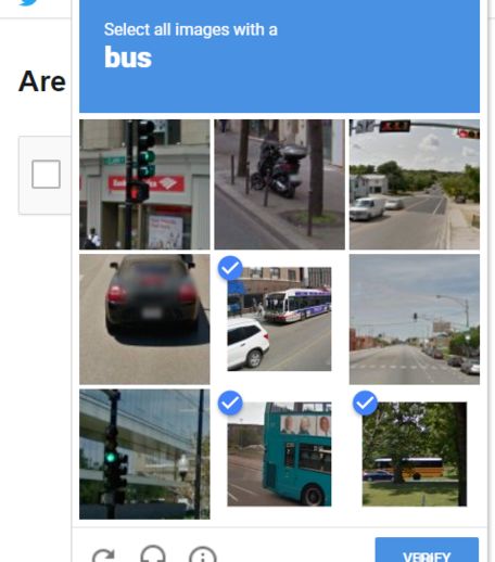 6、回答图中的验证,比如这个,找出图中的bus,选好之后点击VERIFY(确定)。