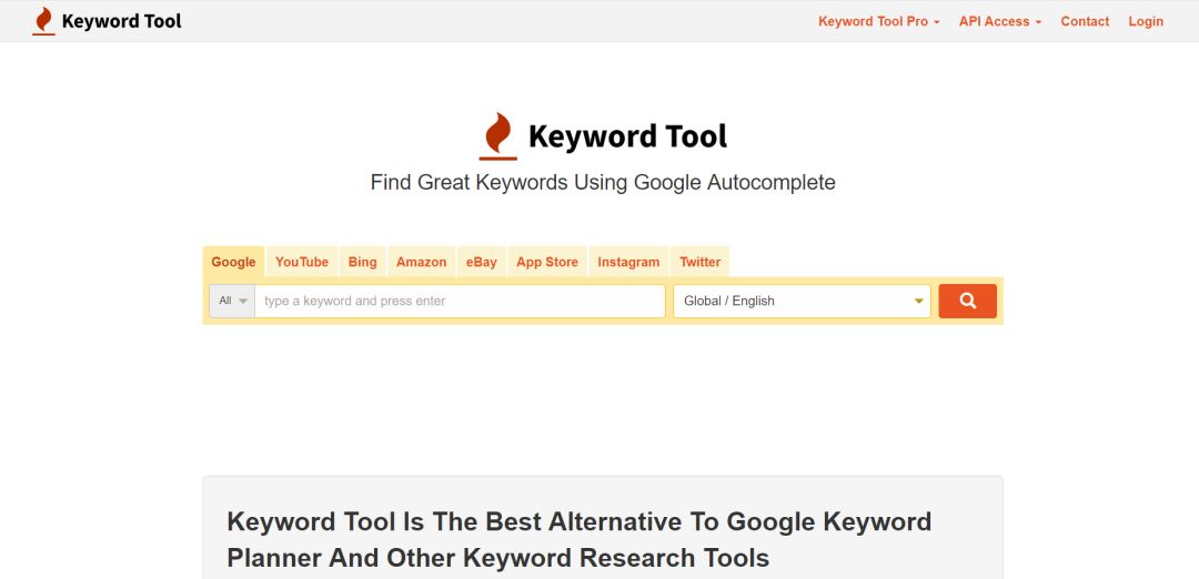 无需创建账户就可以使用的关键词工具,跨平台、多地区、多语言关键词搜索网站,每个搜索项多达750个长尾关键词。
