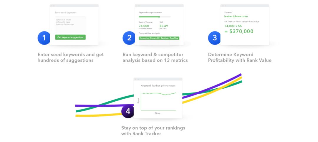 国外开发挖掘并追踪关键词的软件。使用竞争对手的关键词并通过访问大量相关和相似术语和短语的数据库,建立一个有利可图的关键词列表。