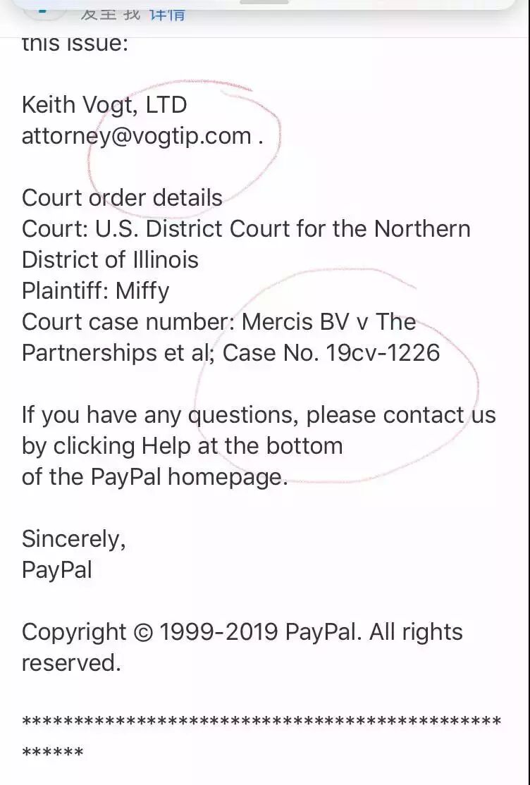 近日,有eBay卖家称自己收到了Keith律所发来的邮件,邮件具体内容为由于涉嫌侵犯Miffy(米菲兔)的知识产权,这位卖家的paypal账户的正常使用功能将受到影响。在进一步调查之前,付款、收款、提现以及查看paypal账户资金的功能也被限制。